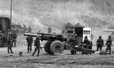 4月5日,韓國坡州,該國士兵演練炮擊。