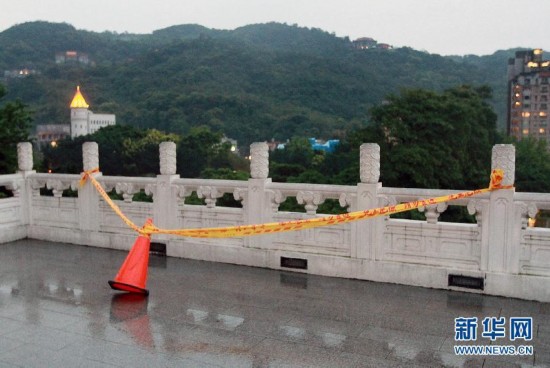 4月5日,台北故宫博物院内男子坠落处的栏杆拉起警戒线。当日,一名男性大陆游客在台北故宫博物院内拍照时,疑因未注意后侧栏杆高度,从二楼平台坠落地下一层。意外发生后,这名游客被紧急送往附近的新光医院抢救,但因伤势过重不治身亡。新华社发