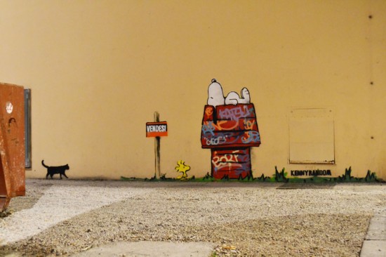 Kenny Random是意大利的一名街头艺术家,他在帕多瓦的街道墙壁上随意地涂鸦,并以此为乐,他的知名作品是一个男子和猫的剪影。漫步在城市里,如果能看到Kenny的作品,心情会顿时开朗起来。
