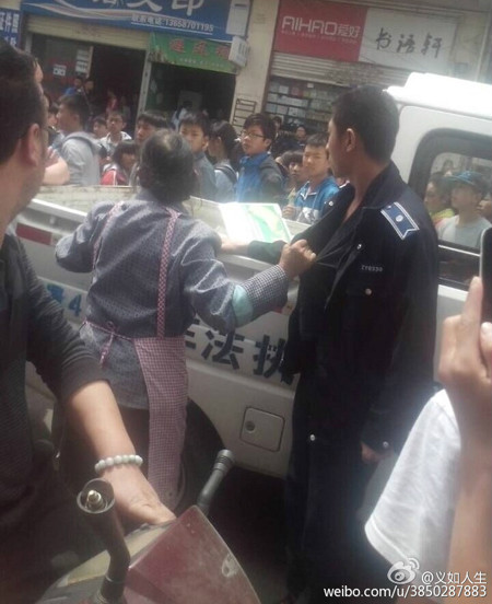 昨日下午,有网友发微博称,昭通昭阳区的城管到区一中门口执法的时候,与一名正推着三轮车卖香蕉的老人发生冲突,城管队员欲动手打老人,遭到该校近千名学生围攻。