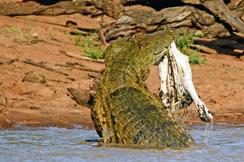 南非鳄鱼将斑马撕成碎片