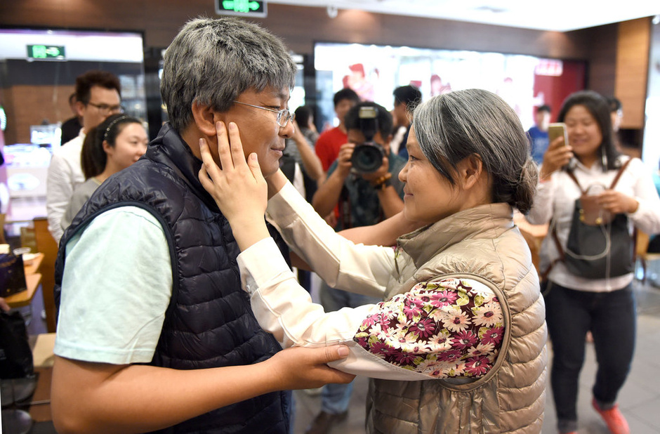 5月20日,郑州,一对30多岁的年轻夫妻,经过化妆变成了70岁的老人,双方在2个多小时的活动中体验了40年时光的跨越,感受了常人无法感受的复杂心情,活动结束后,两人都表示这是一次难得的体验,双方会更加珍惜对方,共同让家庭更加和睦,真正地携手到白头。图片来源CFP
