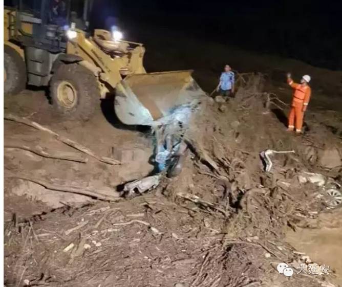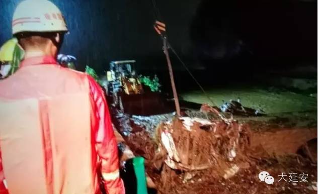 8月15日下午天气突变,延安市亮起雷电黄色预警信号,暴雨突袭,20时46分,延安市公安局报告,安塞县砖窑湾镇西河口社区杨圪崂村因暴雨引发山洪,淹没河槽和省道303公路。据现场目击者称,有四、五辆车被洪水冲走。