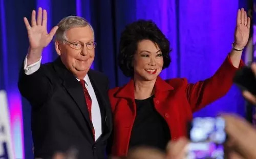 赵小兰丈夫是现任美国参议院共和党领袖麦康奈尔,他历经5任总统,是参议院最有影响力的共和党议员。