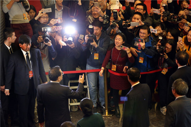 【大批“蹲守”记者,惊喜等来总理】4日下午,李克强走进全国政协经济、农业界委员驻地时,大批“蹲守”记者惊喜之下纷纷举起手机和录音笔,亮出“长枪短炮”,争相向总理提问。李克强在进来和参加完联组讨论离开时,两次在记者队伍前驻足,并回答了几个问题。总理大声说,要对中国经济充满信心!