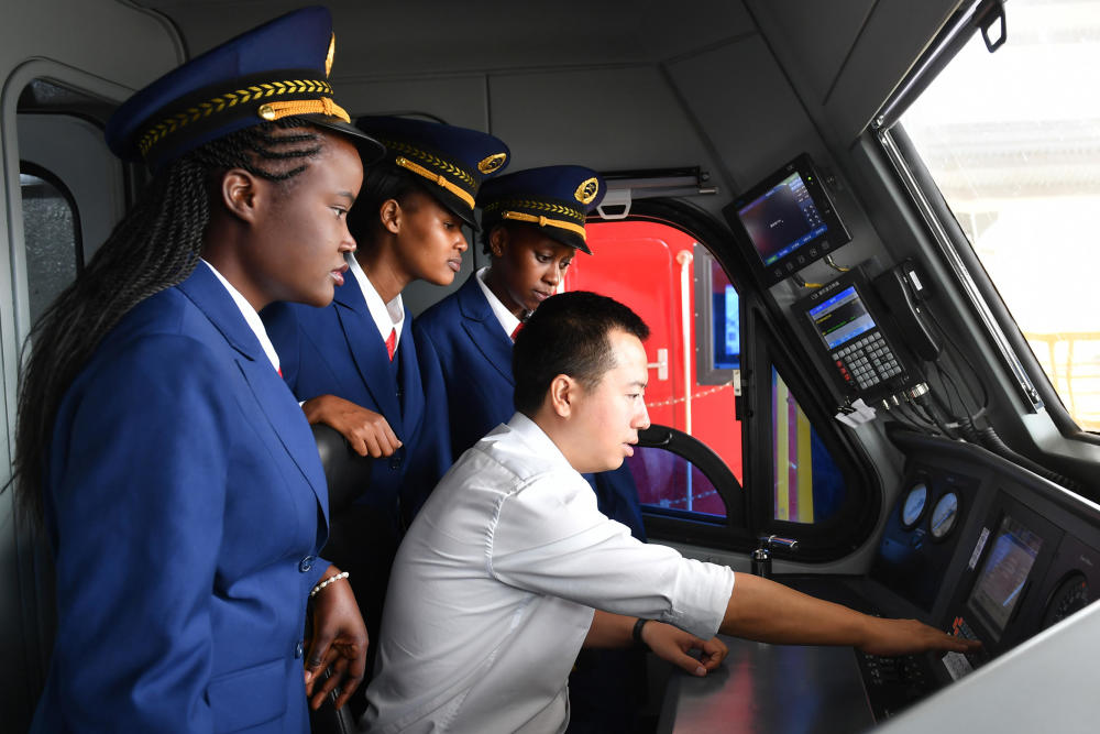 “确认车位”“车位正确”“机车信号”“绿灯”“出站信号”“出站好了”……这是火车驾驶舱内的中国师傅涂主新向肯尼亚女徒弟艾丽斯发出的一段指令。