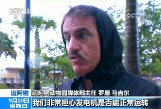 迈阿密动物园媒体部主任 罗恩·马吉尔:我们非常担心发电机是否能正常运转。因为我们有“生命维持系统”,比如给水族馆持续泵水等等。一旦发电机停止工作,氧气无法进入水中,就会直接导致动物死亡。