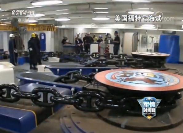 对于前后使用过几十艘航空母舰的美国海军来说,海试仍是每艘航母必须经历的过程。今年7月,美国首艘福特级核动力航母福特号正式入列服役。这之前,福特号按照美国海军的验收条例在海试阶段接受了500多项测试。其中包括主推进器、辅助系统、转向系统的测试,比如紧急转向和高速转弯,这两项试验是航母在建造完成或改装大修之后,需要进行的一种压力测试,目的是检查航母的适航性。而抛锚泊船主要是测试锚机、锚链以及其它抛锚、收锚设备的运转情况。损管系统的测试也是一个大项,画面上正在进行的就是损管系统中的消防系统测试。机库上方喷出的是水成膜泡沫,也称为轻水泡沫,它是舰船广泛使用的灭火剂,一旦发生火灾可以有效防止火势蔓延。甲板上白色泡沫四处飞散,就像是有个超大的洗衣机出了故障,这个场面常常被戏称为航母在洗澡,其实这是飞行甲板的灭火测试。这个喷淋装置除了能够灭火,还用于航母受到核生化武器袭击后的洗消工作。测试中航母舰员们会在造船厂工作人员的指导下学习如何使用这些设备,以应对突发的紧急情况。