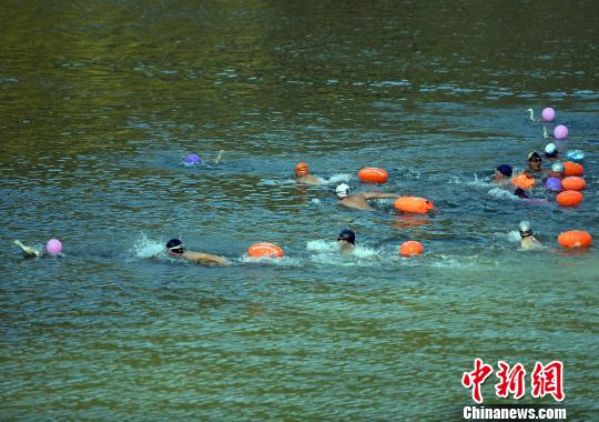 闽浙冬泳爱好者水中比赛抓鸭