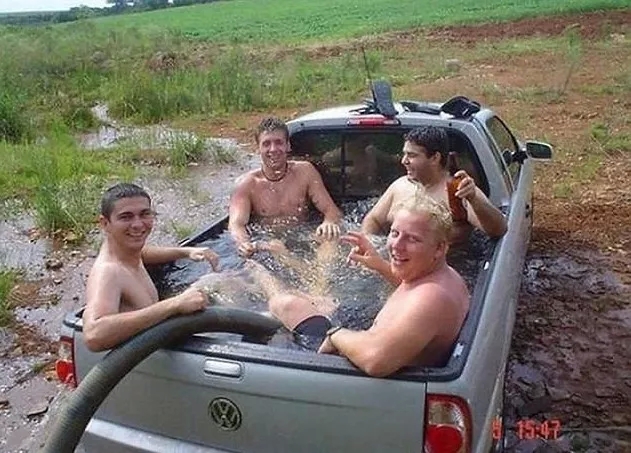 你没看错...这帮家伙把皮卡后面变成了热水浴缸...