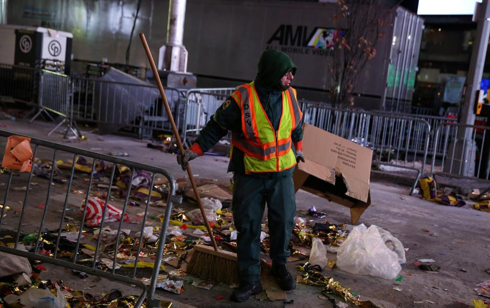 纽约百万人跨年留大量垃圾 工人艰难清理