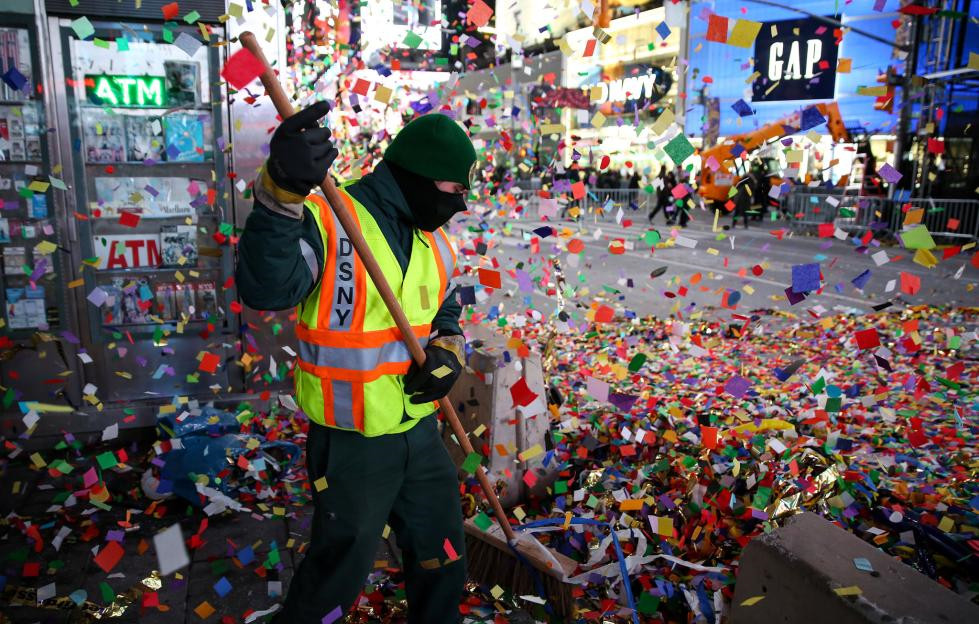 纽约百万人跨年留大量垃圾 工人艰难清理