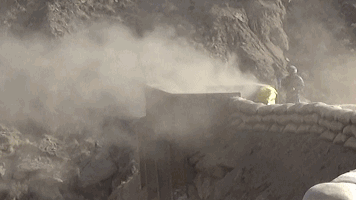随后,安全员吴彬彬紧紧抱住张宇,抖了抖身上的尘土,询问张宇情况,示意迅速离开。