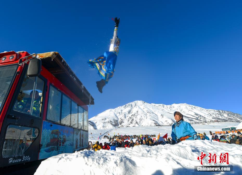 1月1日,新年第一天,地处新疆阿勒泰山深处,被誉为“神的自留地”的禾木村,当地哈萨克姑娘纵身一跃,跳入齐腰深的积雪中,吸引大批游客围观。近日的一场大雪令禾木村的积雪厚度达到50厘米左右,也将大山深处的禾木村装扮的如同“童话世界”,新疆喀纳斯冰雪风情旅游季也正式拉开帷幕。中新社记者 刘新 摄