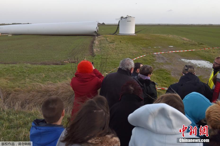 "卡门"风暴肆虐 法国一风力发电机被"拦腰折断"