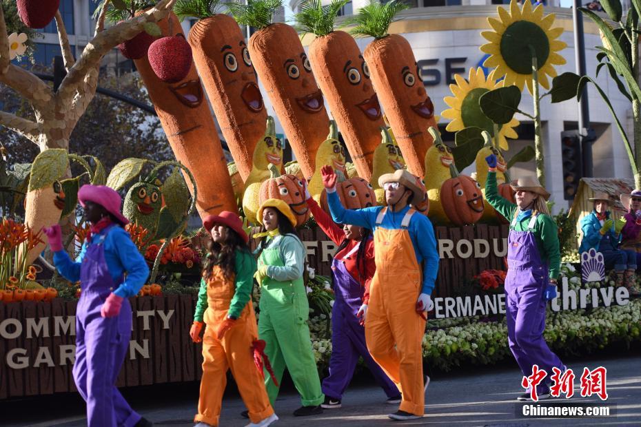 美国玫瑰花车游行盛大登场 "中国元素"引人瞩目