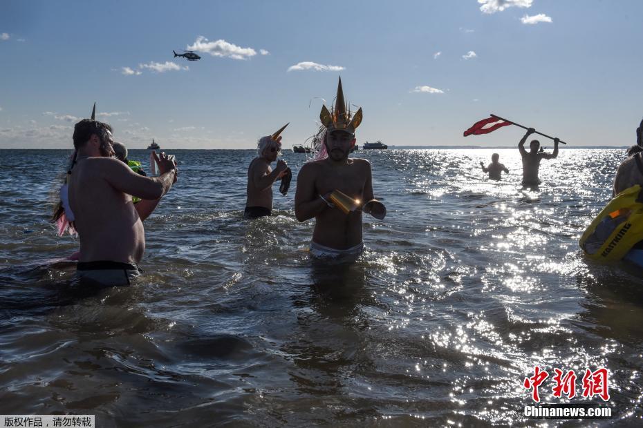 “北极熊冬泳”迎新年 纽约民众跳入冰冷海水