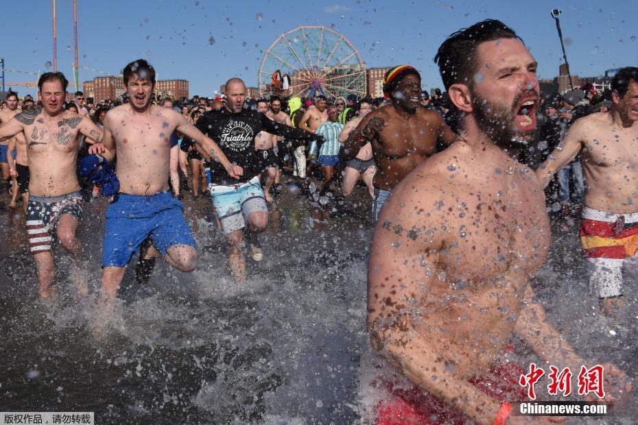 “北极熊冬泳”迎新年 纽约民众跳入冰冷海水