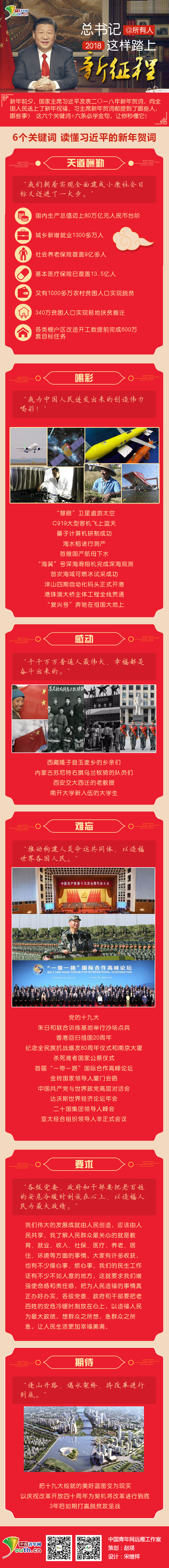 中国青年网北京1月2日电 新年前夕,国家主席习近平发表二〇一八年新年贺词,向全国人民送上了新年祝福。习主席新年贺词都提到了哪些人,哪些事? 这六个关键词+六条必学金句,让你秒懂它!