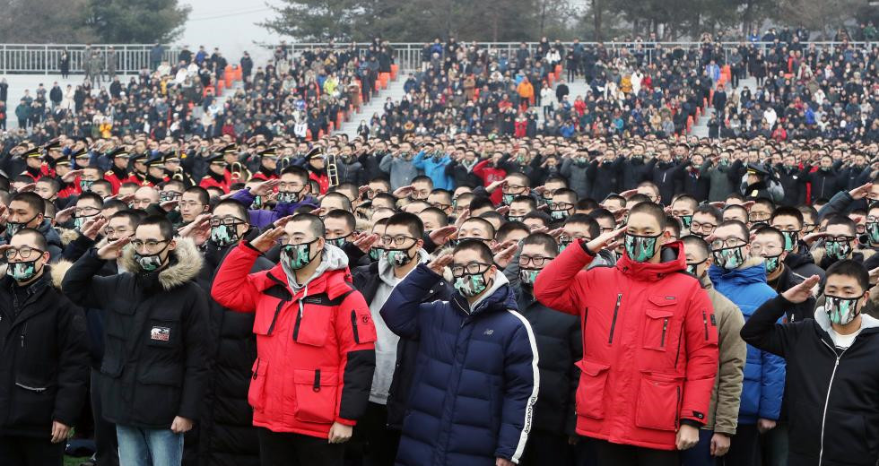 当地时间2018年1月2日,韩国忠南论山,在忠南论山训练所,2018年第一批新兵举行入伍仪式,与父母挥泪告别。