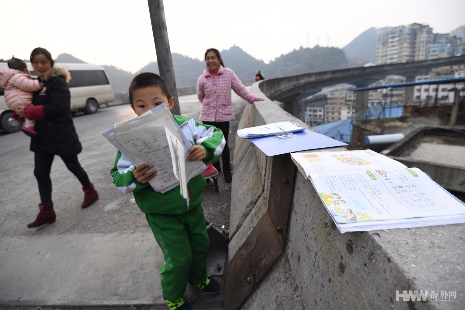 8岁男孩高架桥上写作业 新年渴望有盏台灯