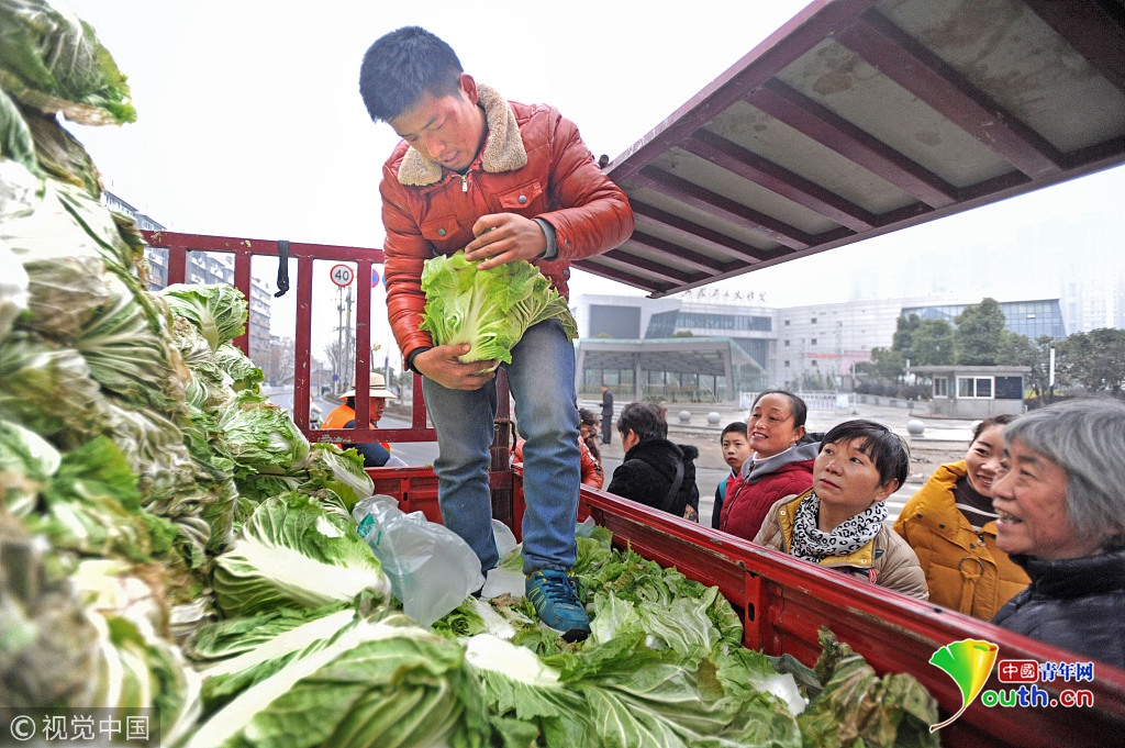 武汉:冰雪天将至 市民抢购大白菜好过冬