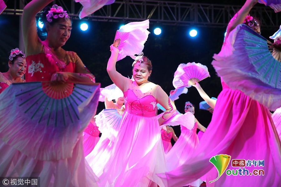 海口200名广场舞大妈浓妆上阵 热情斗舞