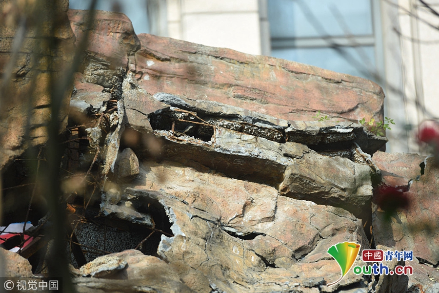 据了解,倒塌的是一座钢筋混凝土浇筑的假山山体,是医院用做污水处理的地方。整个山体大约高五米,倒塌后的高度在三米左右。