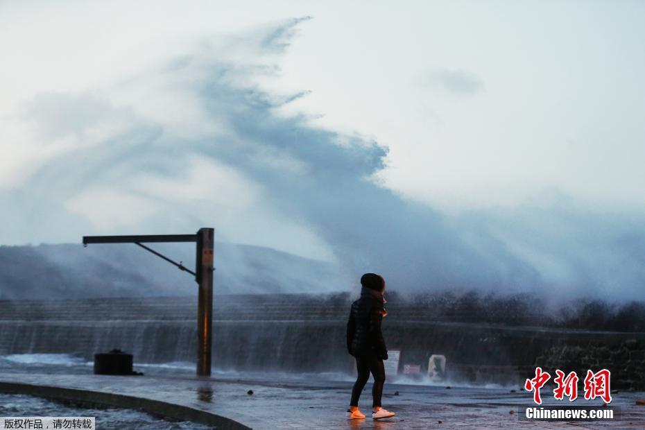 当地时间2018年1月3日,法国欧代维尔,风暴“埃莉诺”席卷诺曼底海岸。继风暴“卡门”之后,法国又面临被称为“埃莉诺”(Eleanor)的风暴。据法国媒体“欧洲第一电台”1月2日报道,法国气象台在当地时间1月2日白天早些时候,对全国21省发布强风或洪水橙色预警。但在当日下午,橙色预警范围已扩展至48省。