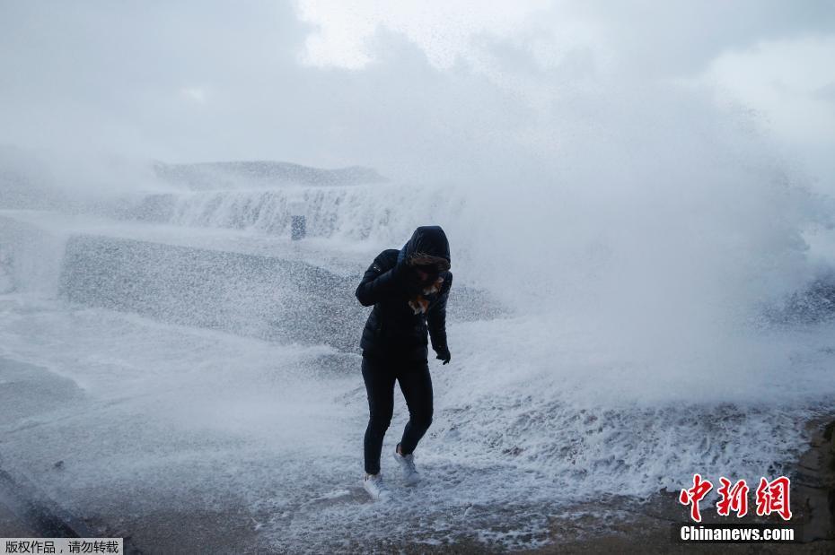 当地时间2018年1月3日,法国欧代维尔,风暴“埃莉诺”席卷诺曼底海岸。继风暴“卡门”之后,法国又面临被称为“埃莉诺”(Eleanor)的风暴。据法国媒体“欧洲第一电台”1月2日报道,法国气象台在当地时间1月2日白天早些时候,对全国21省发布强风或洪水橙色预警。但在当日下午,橙色预警范围已扩展至48省。