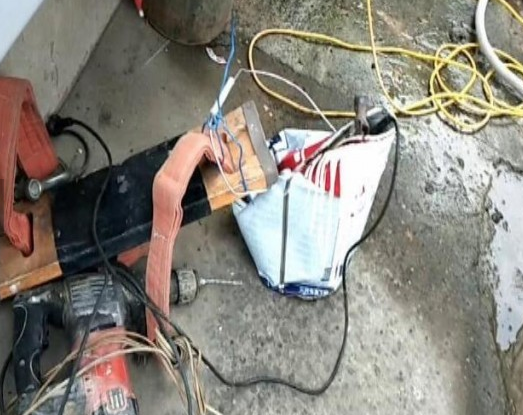 2日,记者在事发地看到,该楼栋单元口仍摆放着未安装的多根白色楼体排水管,附近放着受伤工人施工时坐的木板吊篮和一个被砸扁的圆形铁桶。紧邻事发楼体一车棚的看车师傅介绍称,铁桶是被坠落的工人砸扁的,里面放的是用于固定排水管的卡子,当时工人要在墙体打孔下钉,可能吵到了住户。