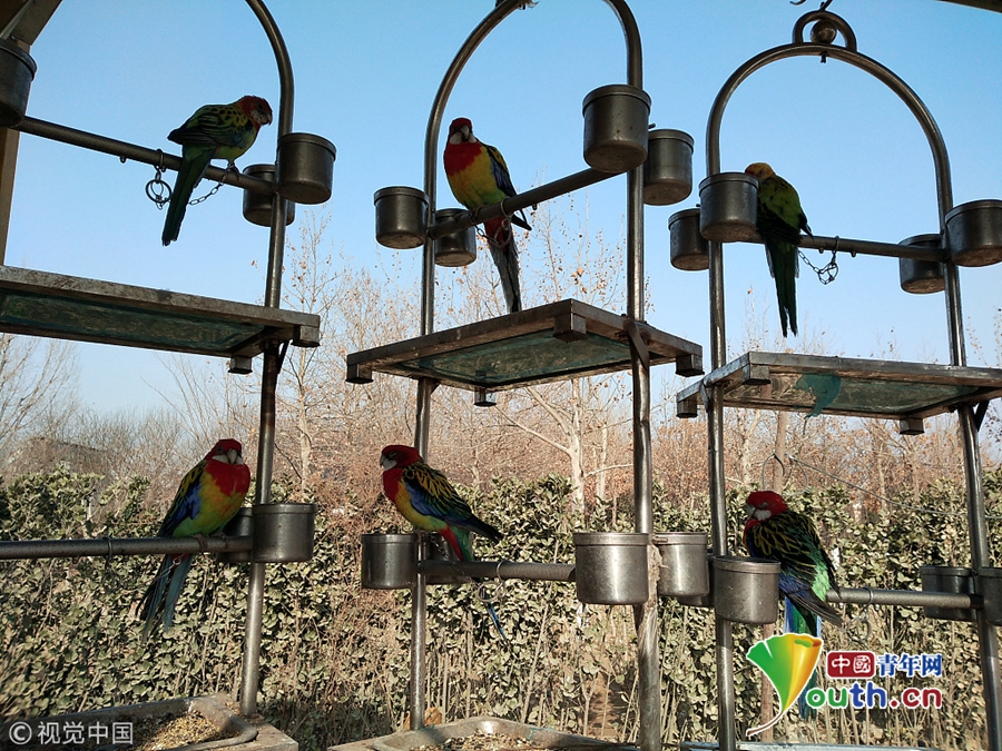 山东聊城卖鸟小伙给鸟买“房车” 吸引群众围观