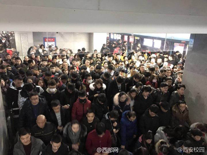 这是下大雪后的西安地铁站