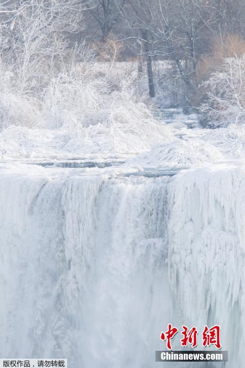 尼亚加拉瀑布现"冰封"美景 游客冒严寒观赏