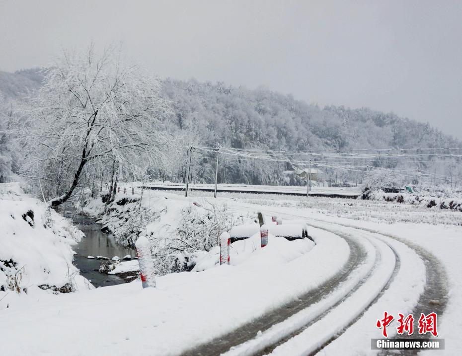 1月4日,安徽省霍山县黑石渡镇柳树店村雪景。当日,安徽省气象台发布暴雪橙色预警。6小时内淮河以北南部和江淮之间大部分地区降雪量将达10毫米以上,其中沿淮以及大别山地区局部将达15毫米。 中新社发 胡吉林 摄 图片来源:CNSPHOTO