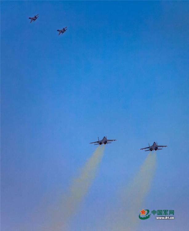 战机编队升空,集合出航。文/田旭辉 孟庆宝 王猛 图/杨盼 图片来源:中国军网