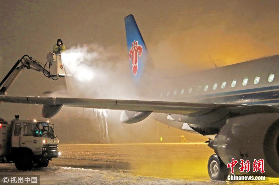 江苏常州暴雪 机场地勤昼夜除冰除雪