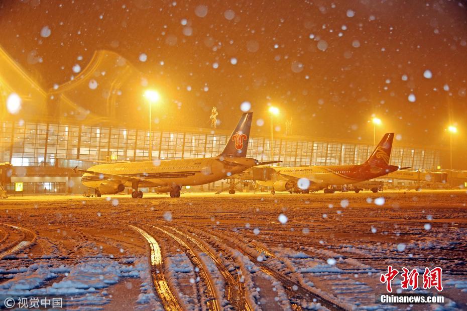 江苏常州暴雪 机场地勤昼夜除冰除雪