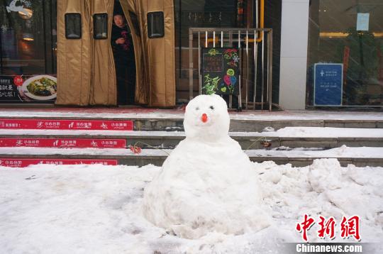 图为郑州商店门口,孤独的雪人在迎客。 韩章云 摄