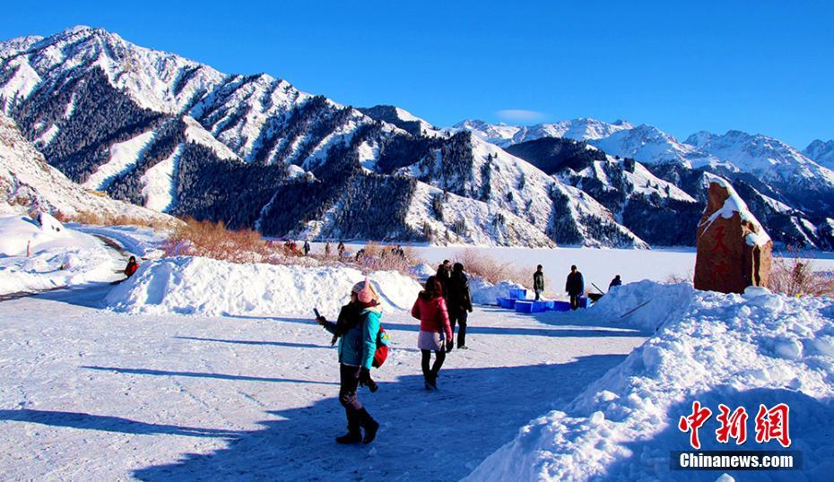 天山天池树挂美景吸引游客观赏。刘丽 摄