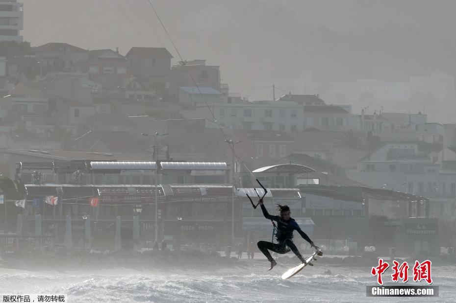 "埃莉诺"风暴袭击法国 冲浪者挑战海岸巨浪