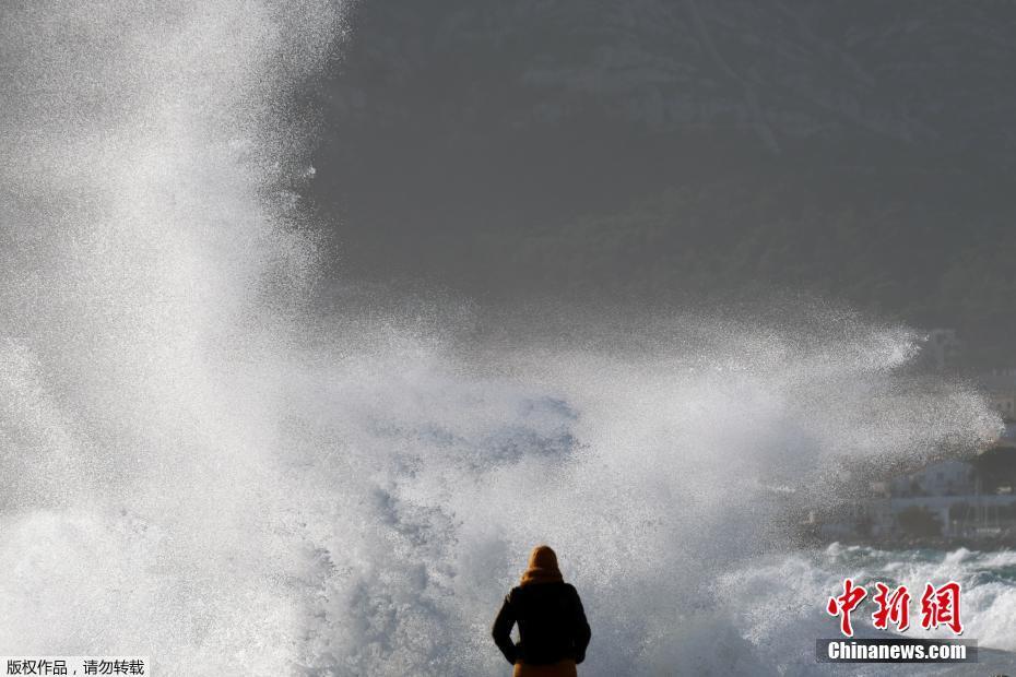 当地时间2018年1月4日,法国马赛,“埃莉诺”风暴卷起巨大海浪。“埃莉诺”风暴来袭带来的恶劣天气仍在法国持续。据法新社报道,恶劣天气已引发多起事故,1人在滑雪时被倒下的树木砸中死亡,另有15人受伤,其中4人伤势严重。