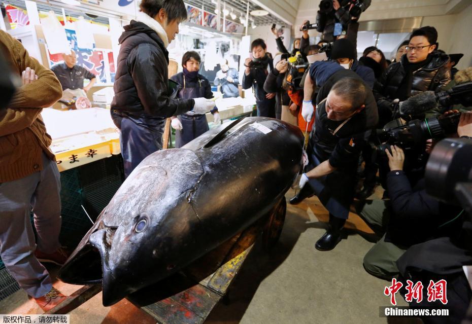 日本筑地鱼市新年首拍 巨型金枪鱼拍出210万元
