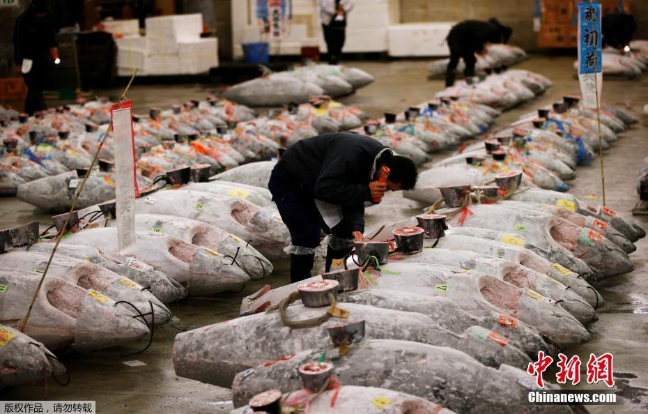 日本筑地鱼市新年首拍 巨型金枪鱼拍出210万元