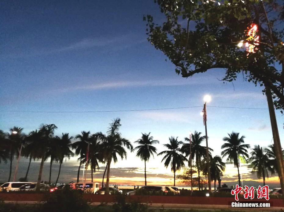 菲律宾首都马尼拉著名的罗哈斯大道,一侧是菲律宾诸多重要政府部门,一侧是市民们自由自在休闲的公共场所马尼拉湾大堤。马尼拉湾夕阳被誉为世界上最美夕阳之一,图为1月4日拍摄的落日景观。中新社记者 关向东 摄
