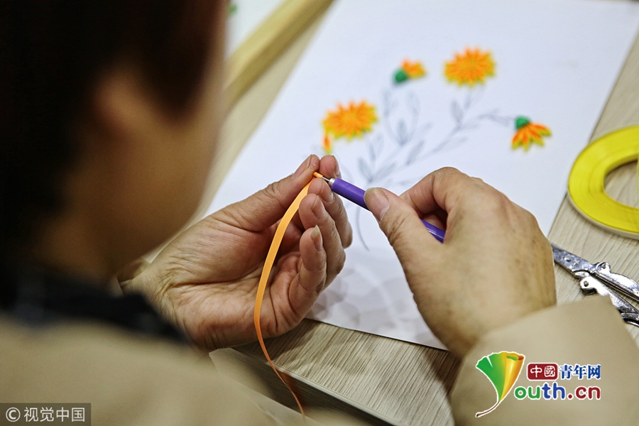 ​2018年1月3日,杭州华家池社区有一群平均年龄70岁的老人,从2016年开始坚持用衍纸做公益,其中年纪最长者已有85岁。在他们的巧手下,单调的卷纸都变身色彩斑斓的艺术品,每一幅衍纸作品都象征着老人们满满的爱心。