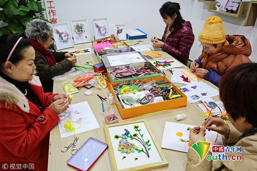 ​2018年1月3日,杭州华家池社区有一群平均年龄70岁的老人,从2016年开始坚持用衍纸做公益,其中年纪最长者已有85岁。在他们的巧手下,单调的卷纸都变身色彩斑斓的艺术品,每一幅衍纸作品都象征着老人们满满的爱心。
