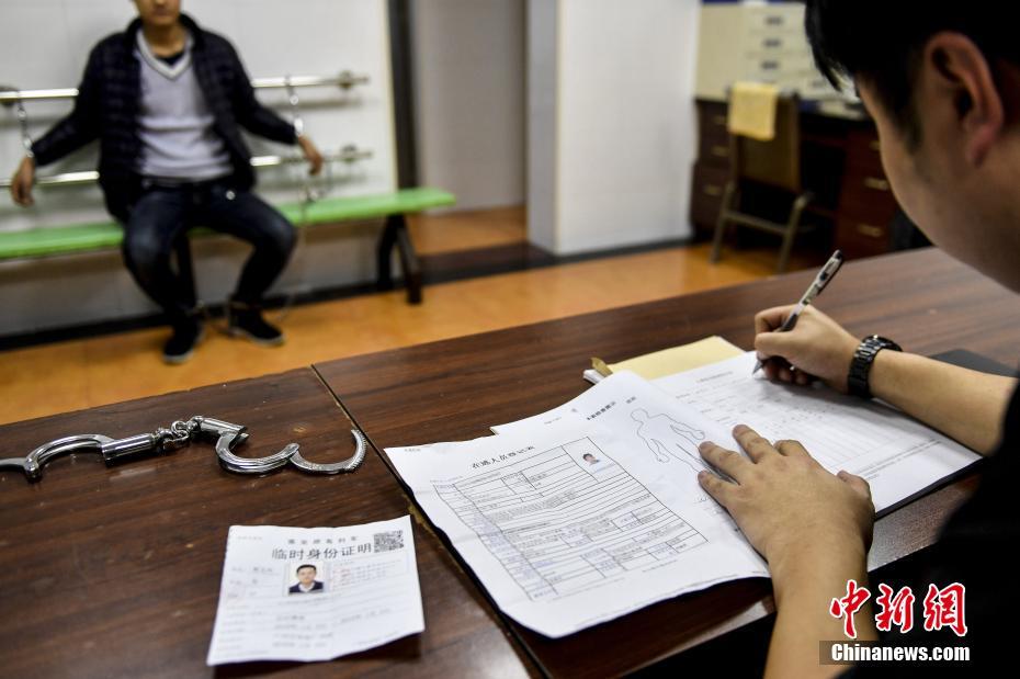 1月5日,犯罪嫌疑人郭某在火车站派出所内承认了犯罪经历,警方依法对其进行信息登记。 陈骥旻 摄