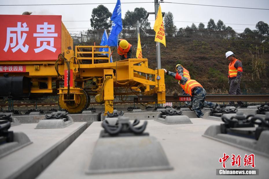 成贵高铁首次铺轨 预计2019年底全线开通运营