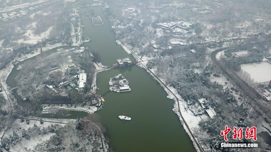 航拍雪后瘦西湖 南方也能一派“北国风光”